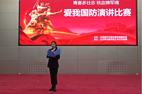 按照齐齐哈尔市委宣传部、军分区、共青团齐齐哈尔市委《关于组织开展2020年“爱我国防”大学生演讲比赛的通知》要求,在全校范围内形成关心国防、热爱国防、建设国防、保卫国防的良好氛围。9月25日18时,由学院团委主办、校大学生艺体团承办的“爱我国防”大学生演讲比赛在图书行政楼二楼多功能厅举行。团委老师、校往届演讲比赛冠、亚军担任本次比赛评委。