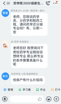通过药学院领导、教师代表、校友代表、在校生代表,以及班主任辅导员的讲话,各位家长对孩子未来在学校的学习和生活有了初步了解,但仍然存在一些困惑,会议最后进入互动环节,各位家长争相在互动窗口积极评价并提问,药学院党委副书记兼副院长韩翠艳对家长的提问进行了逐一解答。