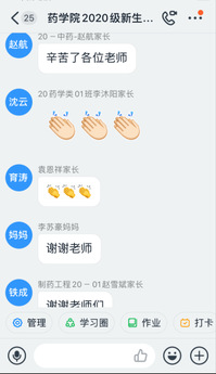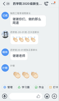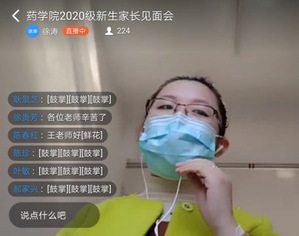 班主任、辅导员与家长的见面也别具一格,正在为新生服务的药学院副处级辅导员、辅导办主任吴润斌,通过连线的方式,在工作现场送上了对家长的祝福、对学生的嘱托。随后,临床药学专业班主任薛迪老师、制药工程专业班主任孙静文老师、中药学专业班主任野津老师、药学大类1班班主任王天阳老师与家长见面。会议还连线了药学大类2班班主任、2020级新生辅导员董玉晶老师,她在迎新现场向各位家长展示了学校为每位同学配送的爱心餐包,以及在周转教室等待学生的现状。最后,药学院党委副书记兼副院长韩翠艳介绍了药学院在“爱生如子”的教育理念下,对师资配备、教学改革、学生管理,以及实习就业等方面进行了详细解读。