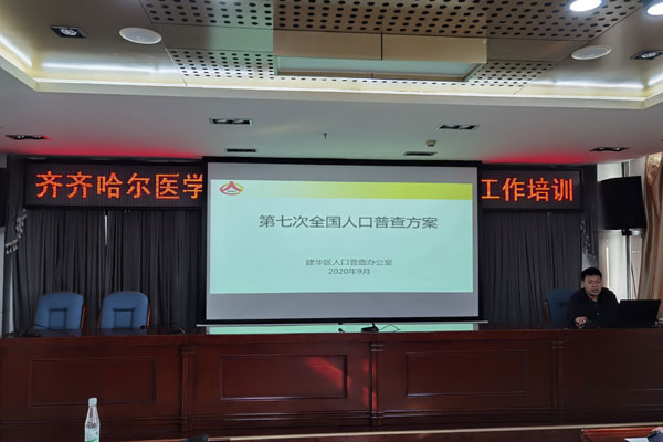 为提高学院人口普查员的业务素质和工作技能,确保高质量、高标准完成第七次全国人口普查工作任务,10月9日,学院邀请建华区人口普查办公室工作人员来院开展了第七次全国人口普查工作培训。会议由学生工作部副部长孟令军主持,研究生处、国际交流合作处普查工作负责人,全体辅导员、附属医院学生科长、学生骨干等60余人参加培训。