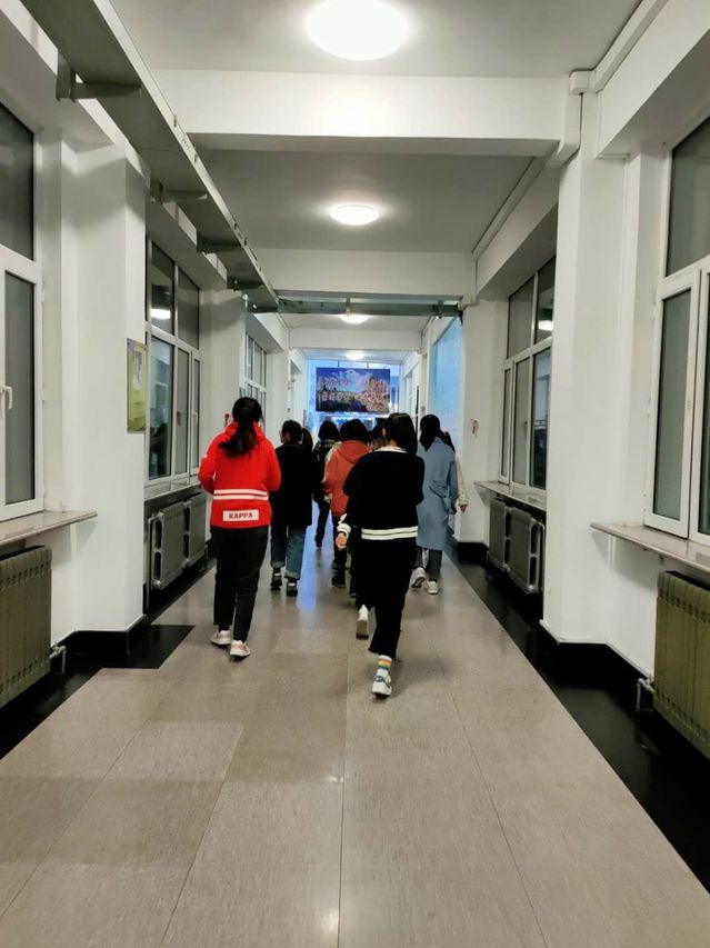 为了确保演练正常有序地开展,辅导员郝晓丽老师制定了详细演练方案,班级干部对参演人员提前进行培训,对流程及注意事项进行了详细说明。晚6点30分演练正式开始,各班班长立即到达指定位置,着火警报响起,大家迅速捂住口鼻,弯着腰,沿着指定楼梯通道快速有序的撤离到安全地带,各班班长清点人数无误,之后辅导员对此次的演练效果进行总结,指出问题和注意事项。
