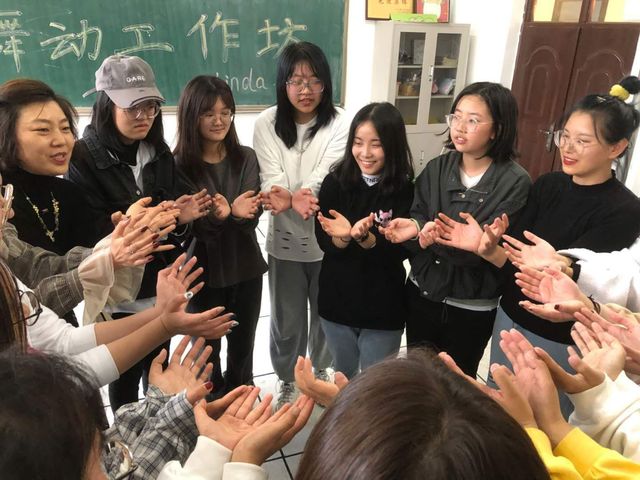 破冰过程中,成员们在别开生面的非语言自我介绍后,迅速拉近了距离。活动由五个环节组成:“大龙小龙”环节,同学们手拉手相连,排头依次换到排尾,对同学们的组织领导能力进行了锻炼和开发;“花儿朵朵开”环节,随机人数临时组队,不同部位相连,使同学们放下防御接纳对方,同时提高了专注力;“火山爆发”环节中,以一人做火山指令,其他人就近相连逐层降低的形式,加深了组员间的配合度,激发了群体凝聚力;“小组加油站”环节,组员们通过彼此鼓励,提高了自我认可度,增强同学们的自信心;最后,在“分享”环节,组员们纷纷讲述了自己参加工作坊的感受,大家表示,通过活动的开展,自己的身心得到了放松,情绪也变得舒缓起来,与组员们建立了非常好的情感链接。本次工作坊使同学们舒缓了情绪,释放了压力,学会了换位思考,活动在一片欢声笑语中结束。