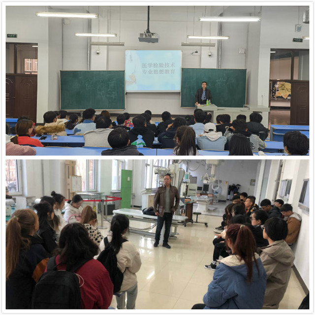 为帮助大一新生进一步了解所学专业特点,明晰专业方向,帮助新生正确处理学习和生活中遇到的问题,医学技术学院根据各专业学科特点,邀请医学技术学院副院长张浩教授、影像设备与技术学教研室郝利国副主任、电子学教研室李靖宇副主任、附属二院王东旭老师和胡斌老师分别对医学影像学、康复治疗学、医学检验技术、医学影像技术、生物医学工程5个专业451名学生开展专业思想教育活动。