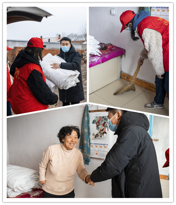 当日下午,承载着齐医学子满满爱心的客车抵达雅尔塞镇音钦村党支部。村民们闻讯赶到村党支部,满怀喜悦地试穿志愿者们带去的衣物和鞋子,满怀感激地将合适的衣物带回家中,嘴里喃喃地说着谢谢,脸上洋溢着幸福的笑容。随后,志愿者们在村干部和团委老师的带领下,分成6组,深入12户贫困村民家中,为他们送去被子等用品,帮助空巢残疾老人打扫屋子,老人感动得拉着李嘉老师的手连声称谢。