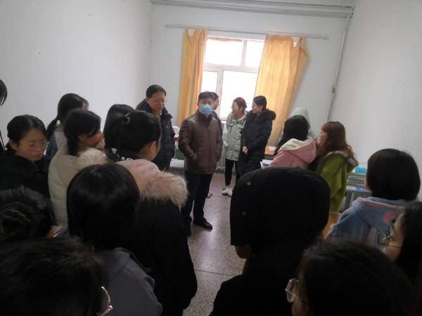 近日天气转冷,在校外宿舍居住的87名2016级预防医学专业毕业班同学,始终被公共卫生学院的领导老师所牵挂着。11月19日,学院党总支书记史孝志、副书记薛海峰、辅导办主任刘兴来一行三人,分别来到九号院和邮政培训中心,看望了在那里住宿的学生。