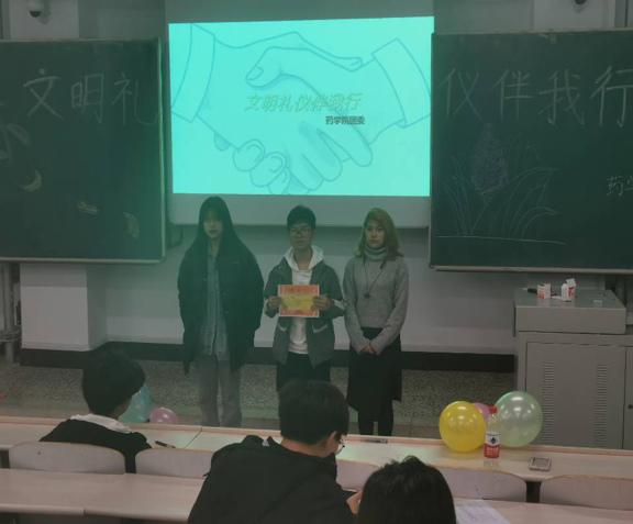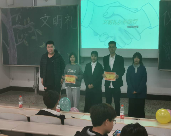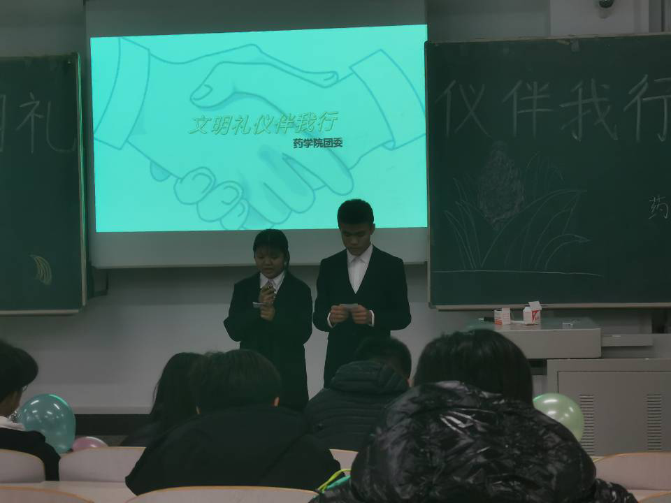 为创建文明学院,提高学生文明素质,11月18日,药学院开展“文明礼仪伴我行”活动,2020级全体同学参加。活动过程中,参赛选手通过PPT演讲展示的方式,对他们眼中大学生的文明礼仪行为规范进行详细解读,对大学生的文明用语、课堂文明、寝室文明、食堂文明、图书馆文明、公共场所文明用正反举例的方式进行说明。才艺展示环节形式多样,朗诵、舞蹈、歌曲等充分展示了药学院学子的风采。此次活动的成功举办,促进学生自觉养成讲文明、知礼仪的好习惯,努力营造健康向上、文明和谐的良好风尚。