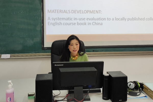 刘丽老师以《A proposal for improving the academic outcomes of English 》为题,介绍了国外ESP、EAP 和EOP 教学情况,内容涉及课程设计、学术论文写作、课程与四、六级的关系、课程对授课教师的挑战等,同时对学院专业英语课程建设和教材编写提出了自己的看法和建议。燕頔老师以《英国雷克瑟姆格林多大学访学见闻与思考》为题,介绍了国外教学环境、访学学校情况、课程设置、教材使用等,从跨文化交际、课程设置及以学生为中心进行教学等方面为大家指出了研究方向。燕頔老师在英国访学期间,积极参加大使馆组织的抗疫活动,发挥了党员模范带头作用,并获得了抗疫志愿者证书。两位教师在国外新冠肺炎疫情严重的情况下,克服重重困难,圆满完成了学习任务。
