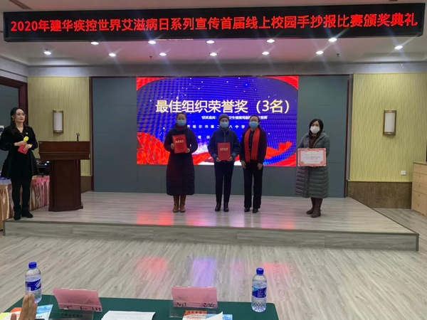 今年是第33个世界艾滋病日,在全球抗击新冠肺炎疫情背景下,为了做好预防艾滋病和新冠肺炎的宣传教育工作,国庆中秋双节之际,建华区疾控中心举办了首届“金秋送爽、疫情防控、平安校园、青春无艾”线上手抄报比赛,公共卫生学院和后勤管理处卫生所进行了认真组织和落实,学院学生积极参与,最后获得一等奖2名、三等奖1名、纪念奖11名的好成绩,学院荣获“2020年度建华区艾滋病宣传组织活动先进集体”荣誉称号。