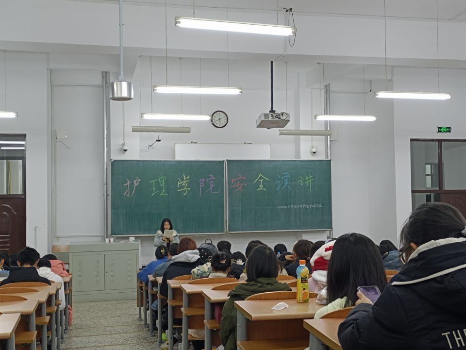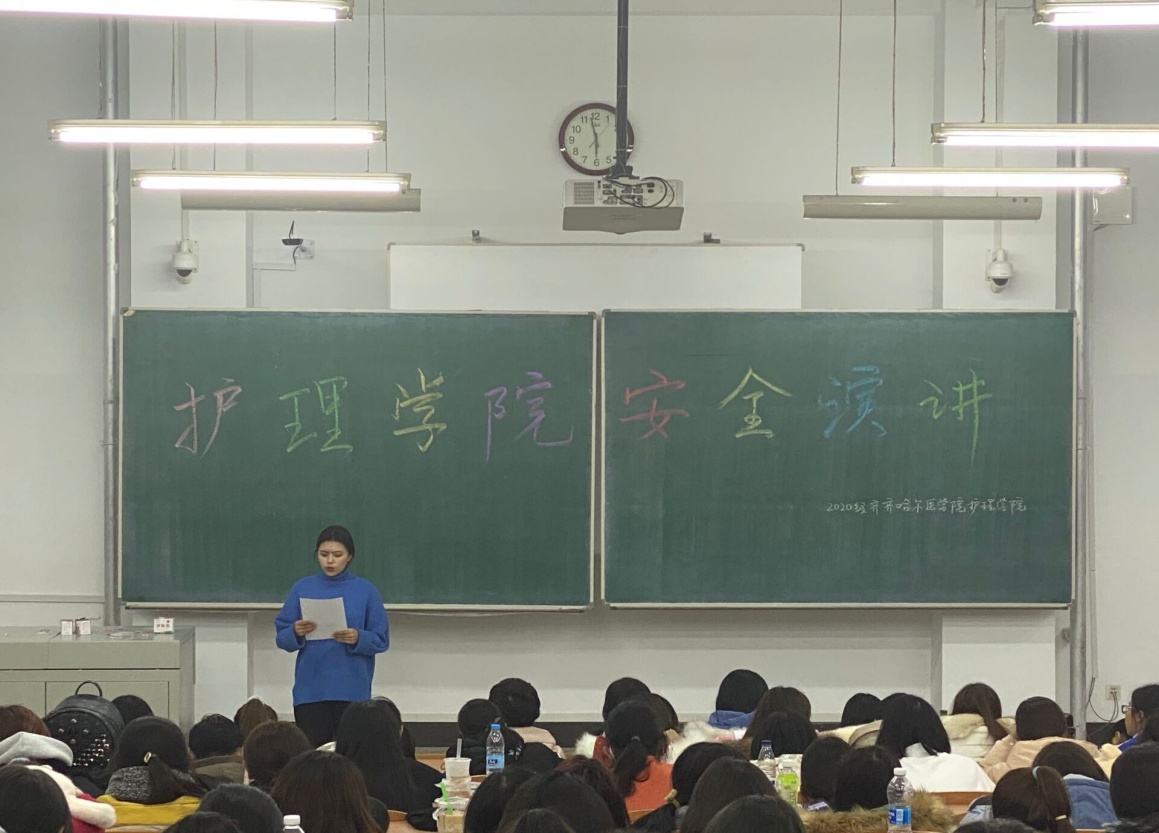 护理学院为提高学生安全意识,增强学生在紧急情况下的应变能力,自我防护能力,使每个学生掌握一定的消防知识,消除火灾隐患,学习有关消防知识和消防器材的使用方法,并掌握消防逃生技能及注意事项等,特在2020年11月19日在北区414举办了安全演讲活动。