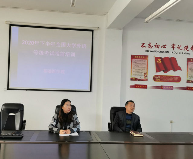 根据全国大学外语四、六级考试委员会和省招办有关文件精神及《基础医学院考务工作规程》相关规定,为全面做好考试工作,维护考试的公平、公正,保证疫情防控期间考试顺利进行,我院于2020年12月10日召开了“基础医学院2020年下半年全国大学外语等级考试暨期末考试考前培训会”,会议由基础医学院潘洪明书记主持,全体监考教师、分管教学工作的副主任及教务科全体工作人员参加了此次会议。