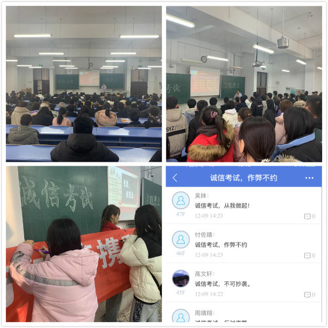 随着期末考试的日益临近,为了使同学们进一步端正考试态度,营造良好的考试氛围,12月15日,医学技术学院2020级5个班级在主楼北区214教室组织开展了“诚信考试”系列主题班会。