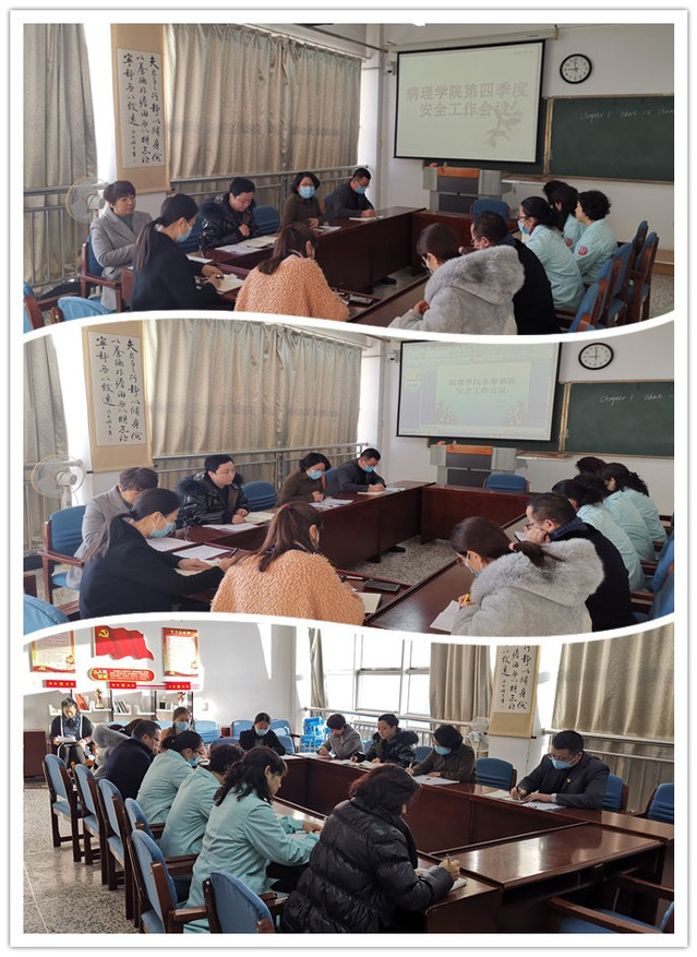 为传达齐齐哈尔医学院第四季度安全工作会议精神,切实做好病理学院各项安全工作,我院于12月30日上午,在教学主楼北区510会议室召开了病理学院第四季度安全工作会议暨冬春消防安全工作会议,会议由李迎新书记主持,姜鹏副书记、刘婷副院长、李春燕副院长及各部门主任参加了此次会议。