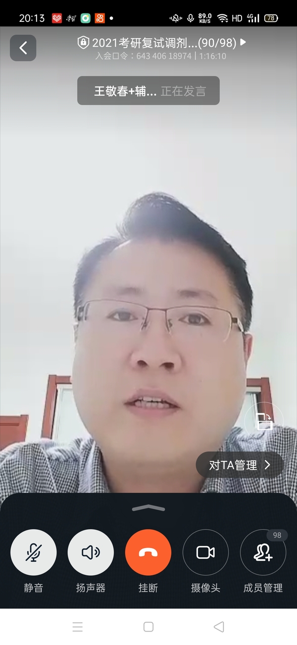 最后,党委书记王敬春鼓励同学们以积极的心态来面对考研复试和调剂,希望同学们能多与考研知心导师沟通,早行动,勿观望。并预祝同学们能考取理想学校。
