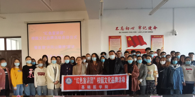 为教育引导青年医学生牢记建党初心、传承红色使命,用红色精神熔铸理想信念、践行大医精神,建党百年之际,基础医学院举办“红色宣讲团”校园文化品牌活动,着力将红色基因融入大学生思想政治教育,引导学生树立正确的历史观、坚定中国特色社会主义共同理想、坚定马克思主义信仰,增强历史使命感,厚植家国情怀。