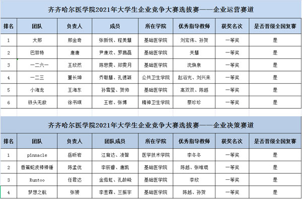 荣获企业运营赛道、企业决策赛道一等奖名单