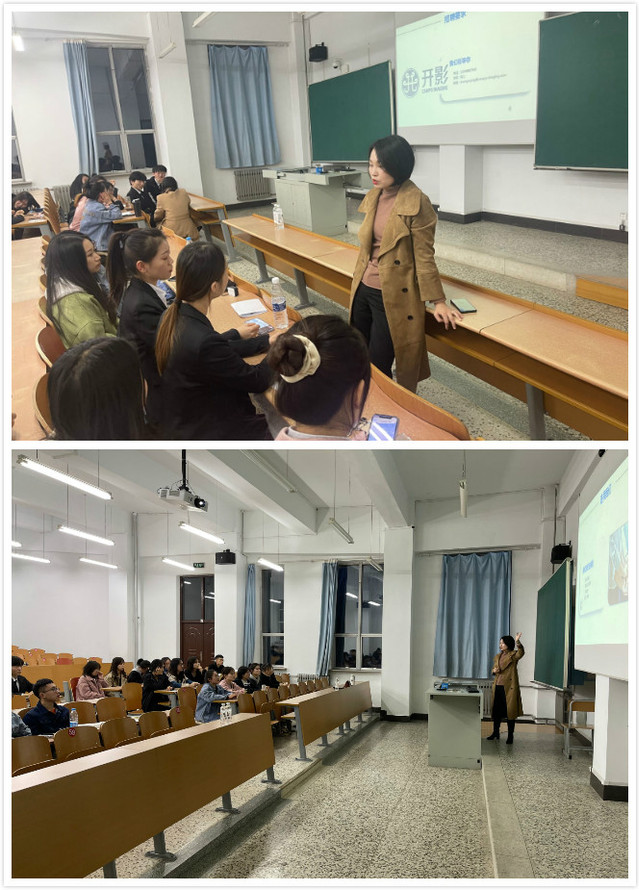 招聘会首先播放了开影公司宣传片,然后许珊珊经理对开影公司的成立背景和发展规划做了介绍,特别提到了公司创始人齐齐哈尔医学院校友的身份,并从工资待遇、假日福利、专属待遇、职业发展等方面进行了讲解,重点讲述了招聘要求,最后邀请了2017级生物医学工程专业毕业生荣锋为大家答疑,宣讲会上7人递交了求职申请,并建立了微信群便于后续联系。