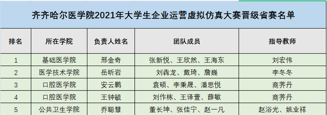 大学生企业运营虚拟仿真大赛晋级省赛团队名单