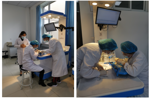 本次竞赛分为理论考核和实验操作两个环节,2人成组,共7组选手参赛。其中理论考核环节为个人赛,参赛选手通过超星学习通软件在20分钟内完成答题,取每组2位选手的平均分计入小组总成绩。实践操作环节为“家兔颈部手术、血压与左心室功能的测量”和“大鼠颈部手术、血压与左心室功能的测量”,由同组2位选手合作完成,7位评委分别对每组的操作进行打分。经过近两个小时的激烈角逐,由赵红晔和文丽波2位教师组成的参赛组获得本次竞赛一等奖。