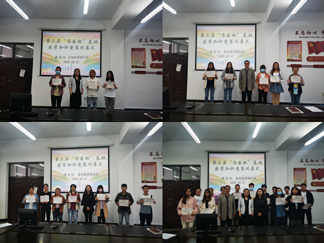 决赛结束后,在教学主楼南区350会议室举行了基础医学知识竞赛闭幕式,基础医学院林岩院长、医学技术学院张浩副院长、基础医学院纪慧副院长莅临闭幕式,共同为获奖选手颁发奖状和奖品,领导们对获奖选手表示衷心的祝贺和鼓励,同时邀请一等奖获得者做了基础医学知识学习和参赛经验的交流。此次竞赛为同学们营造了良好的学习氛围,充分调动了学生学习的积极性和主动性,激发了学习兴趣,提高了医学知识整合和临床思维能力,有效增强了同学们应对执业医师资格考试的意识。