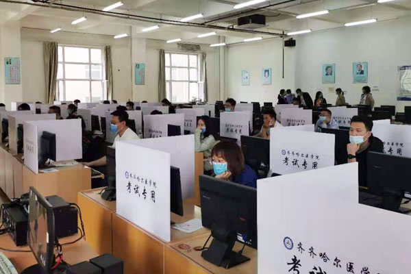 6月5日,2021年黑龙江省住院医师规范化培训及助理全科医生培训结业考核专业理论考核在学院临床教学中心计算机实验中心进行。学院作为齐齐哈尔考点,负责学院附属第一、第二、第三、第六医院(齐齐哈尔市第一医院)住培基地及助理全科医生培训基地27个培训专业262名考生的考核工作。