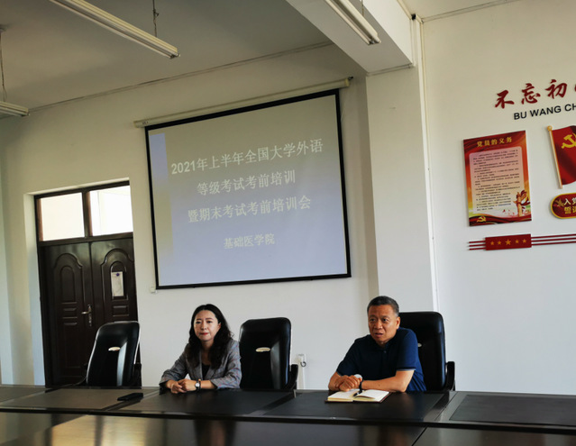 根据教育部考试中心和省招办有关文件精神及《基础医学院考务工作规程》相关规定,为全面做好考试工作,维护考试的公平、公正,保证疫情防控期间考试顺利进行,我院于2021年6月10日召开了“基础医学院2021年上半年全国大学外语等级考试暨期末考试考前培训会”,会议由基础医学院纪慧副院长主持,潘洪明书记、全体监考教师及教务科工作人员参加了此次会议。
