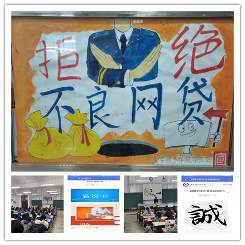 同时,学院充分利用易班平台面向全院学生开展了“诚信倡议书”、普及诚信知识、毕业生诚信还款等宣传教育活动,活动期间共获得关注500余人次,评论300余条,广泛宣传了国家资助政策、普及了征信借贷知识。针对即将要到来的四六级考试,各年级开展了以“请带上诚信与梦想 轻松上场”为主题的诚信教育班会。