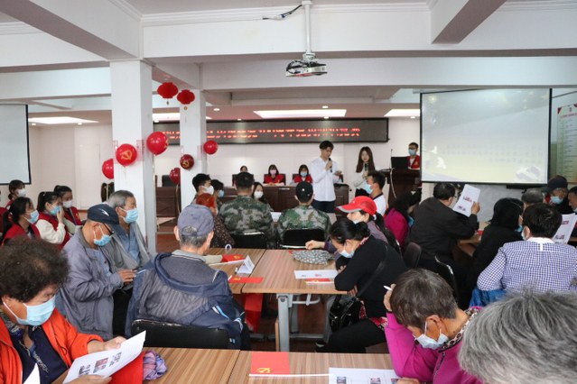 为了调动现场活动气氛,在学生的带动下参加人员首先做了拍拍操,然后进入抢答题、必答题、风险题等竞赛环节,竞赛结束后师生党员和社区党员共同重温了入党誓词。通过在竞赛中学习、在宣传中学习、在合作中学习,不仅检验了了党员的学习教育成效,而且也增强了党员的责任感和使命感,尤其是对非党学生群体开展了一次“百年奋斗路”的生动教育,使他们体会到“中国共产党能、马克思主义行、中国特色社会主义好”,体会到“开新局”的未来对社会工作的需要。