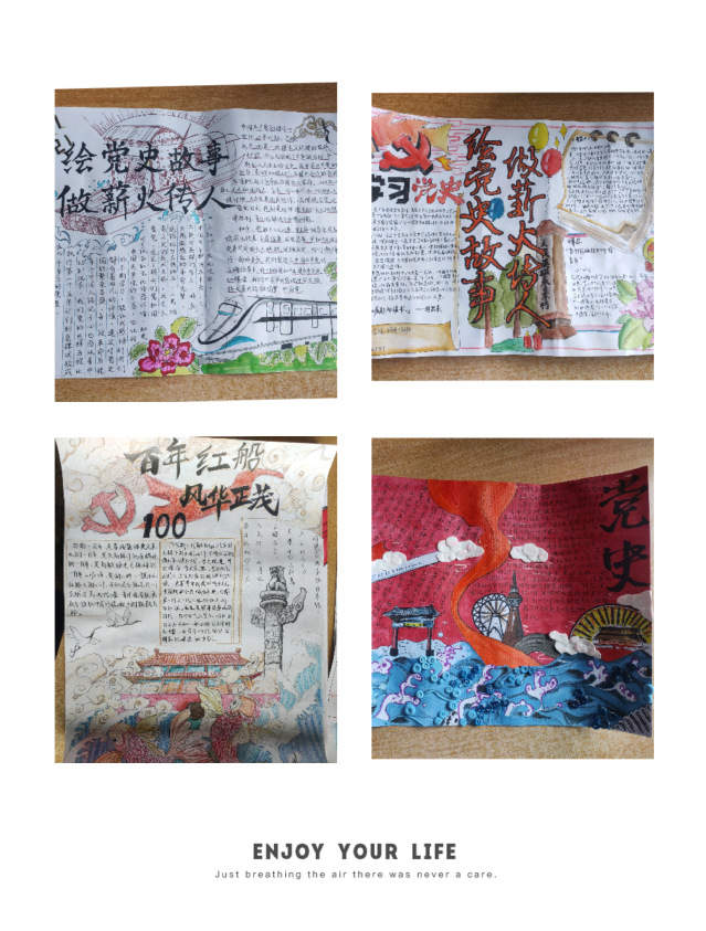 同时我院举办了手抄报比赛,主题为“绘党史故事,做薪火传人”,历时12天,所征集手抄报作品内容积极健康、真情实感,设计新颖独特,体现了当代大学生的积极心理状态,弘扬了党践行初心、担当使命、攻坚克难、夺取胜利的精神力量,主题深刻,共评选出一等奖3人,二等奖5人,三等奖8人。