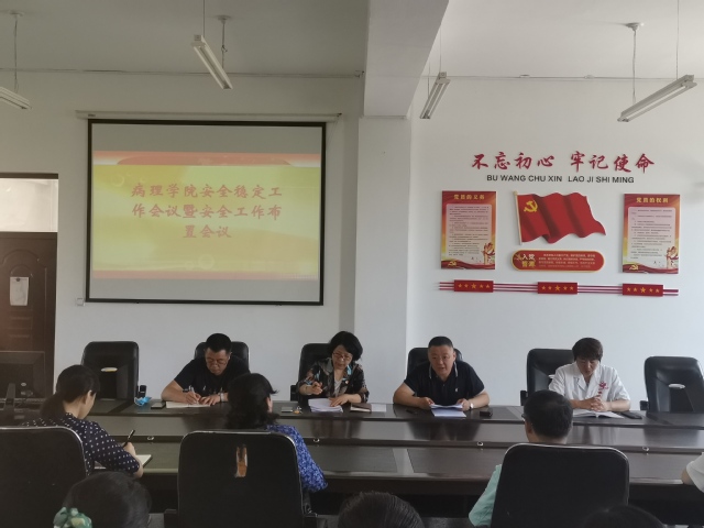 为贯彻落实省委、省政府和省安委会关于安全工作文件要求及齐齐哈尔医学院安全工作会议精神,推进病理学院各项工作安全稳定运行,6月25日上午,病理学院召开了第二季度安全工作总结会议暨第三季度安全工作部署会议,会议由李兴江院长主持,李迎新书记、姜鹏副书记、刘婷副院长及全院教职员工参加了此次会议。