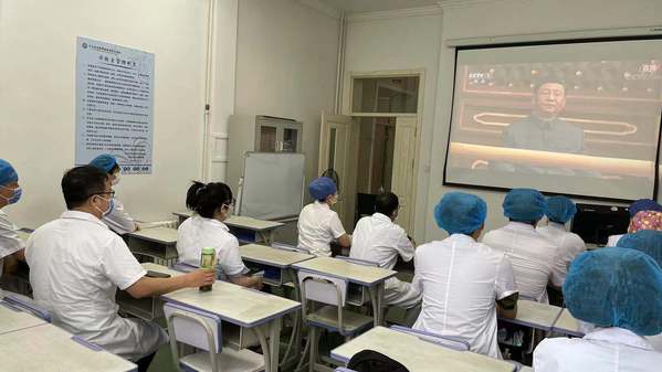 风雨砥砺,岁月如歌,为庆祝中国共产党成立100周年,进一步贯彻和推进学院党史学习教育,引领全体党员、教师、学生“不忘初心,牢记使命”。口腔医学院党总支响应学校号召,于2021年7月1日组织全体师生分别在主楼北区516教室和口腔示教室观看庆祝中国共产党成立100周年大会。
