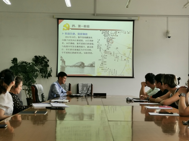 党课中李老师带领大家深入了解了民族英雄马占山以及他背后的故事。首先李老师详细讲解了马占山打响抗战第一枪的经过,一张张弥足珍贵的历史地图,一件件印证着战争罪恶的历史图片,生动还原了当年那场激烈壮烈的鏖战,马占山将军带领部下用铮铮铁骨和血肉之躯在白山黑水之间筑起了一道“钢铁长城”,嫩江之滨奋起抵抗日本侵略者的喊杀声仿佛萦绕在耳畔,仿佛让大家看到了当年抗战英雄在江桥大兴、昂昂溪区、齐齐哈尔等地奋勇杀敌的场面。