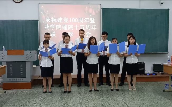7月14日下午,药学院全体教师欢聚一堂,在部系楼A-B101以联欢会的形式庆祝中国共产党成立100周年暨药学院建院十五周年联欢会。药学院领导、全体教师和曾在药学院工作的教师出席了此次联欢会。