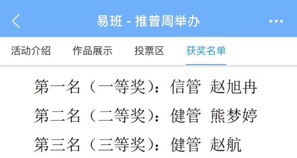 “推普宣传海报设计大赛”以班级为单位开展,以寝室为单位录制“经典诗词文章诵读”视频并进行评比,“观看宣传片发表感言活动”让推普宣传刷爆朋友圈,“规范汉字书写展示活动”在易班平台进行投票评比,活动中,同学们积极踊跃参加,陶冶了现代大学生的文化修养和心灵内涵。