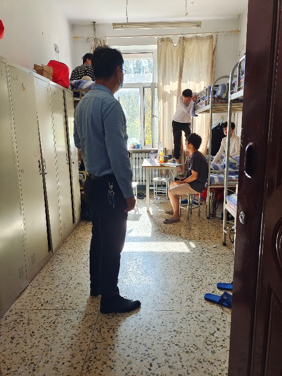 国庆前夕,党委书记王敬春、党委副书记孔寰宇和辅导员一道,深入学生寝室,了解同学们的上课情况及生活中的困难并积极反馈解决。