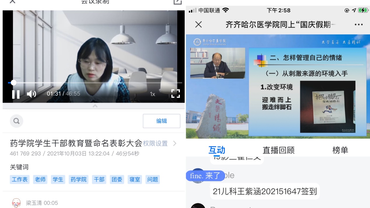 召开学生干部教育暨命名表彰大会,对疫情期间作出突出贡献的学生工作人员进行命名表彰,同时对全体学生干部开展了“做表率、讲奉献、严纪律、转作风”主题教育。组织学生收看国庆假期一课并积极互动。
