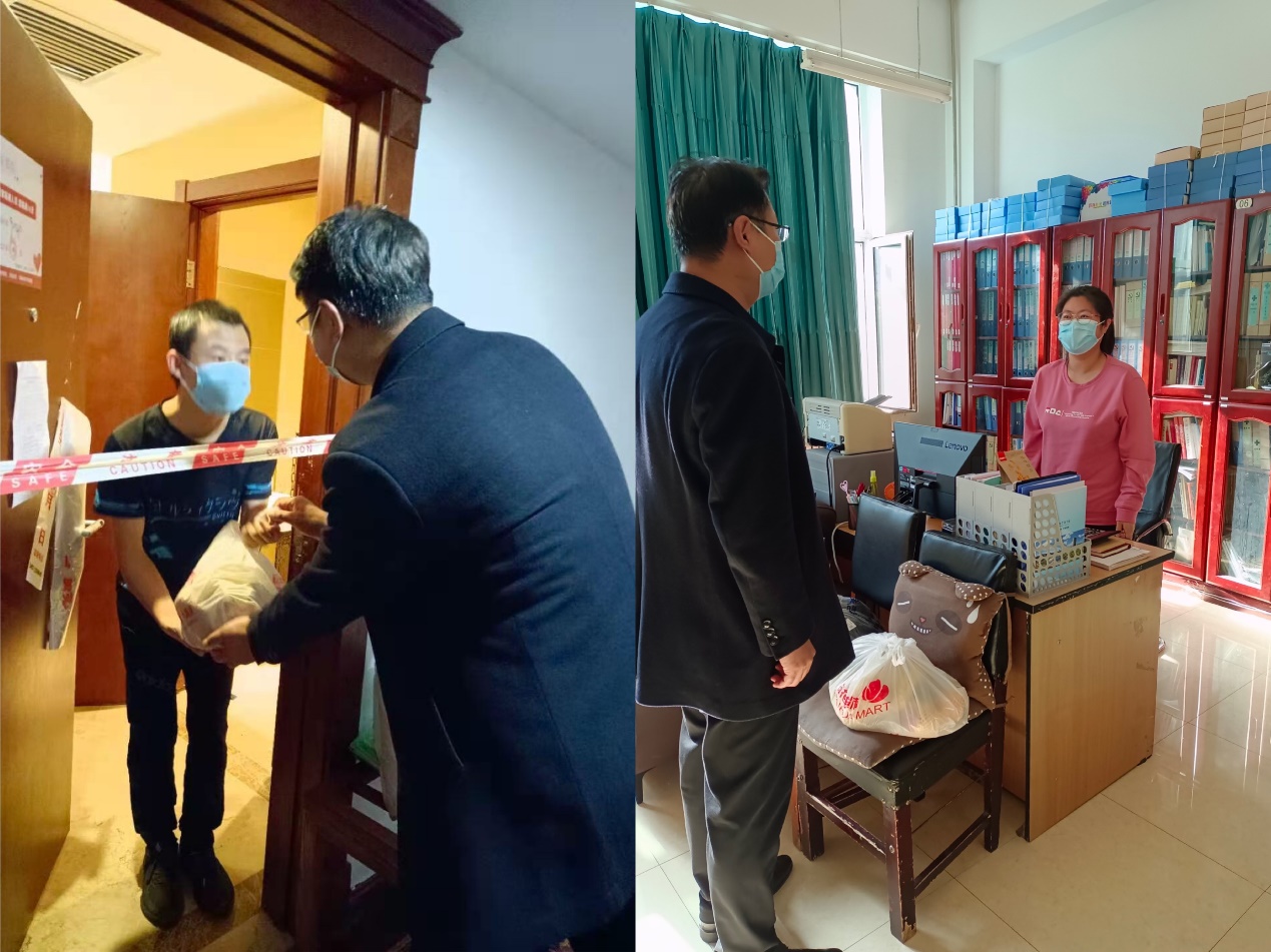 党委书记王敬春看望隔离学生和值班辅导员