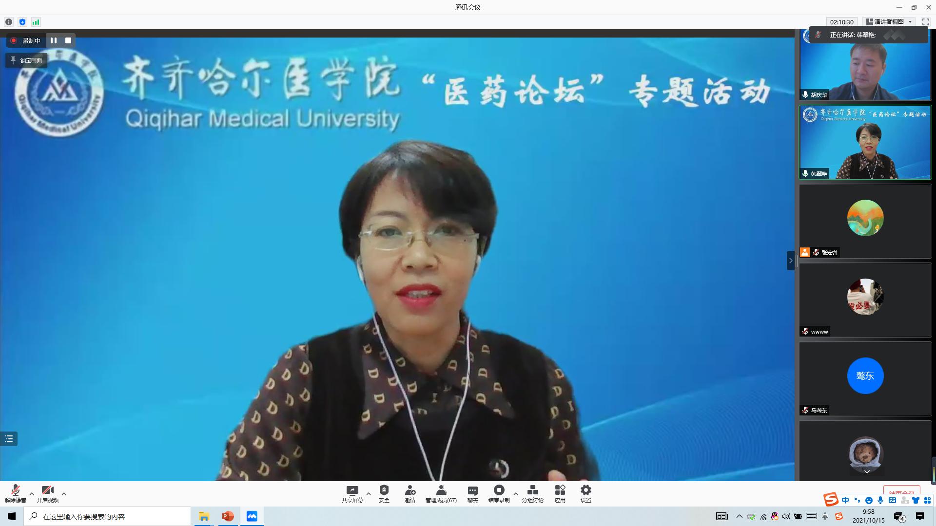 10月14日-15日,药学院邀请贵州医科大学沈祥春教授、中国药科大学胡庆华教授等2位国内外医药领域知名专家进行了线上讲座交流。会议由药学院院长韩翠艳主持,研究生处处长于海涛、药学院全体师生及其他学院、部处(中心)、附属医院师生参加讲座。