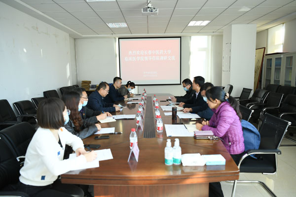 张吉书记介绍了本次调研的目的,以及长春中医药大学临床医学院学制、招生、临床教学等基本情况,并就如何更好地提升临床医学专业学生执业医师通过率、如何实现临床教学质量同质化等同学院相关部处负责人进行了深入探讨。