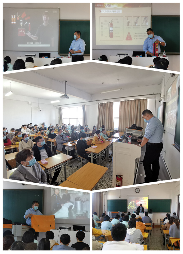 讲座伊始,肖教官首先通过火灾视频的播放,引发大家的共鸣,并结合实际案例为师生讲解了火灾发生时,如何自救;接下来,教官为师生演示了各类型灭火器、灭火毯、防烟面罩的使用方法,师生纷纷表示通过培训,提升了安全意识,掌握了逃生技能,获益匪浅。