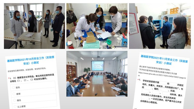 基础医学院汲取近期全国高校实验室事故教训,强化实验室安全意识及责任意识,落实各项安全防范措施,遏制实验室安全事故的发生,确保学校师生生命财产安全,开展安全大检查及安全培训系列活动。