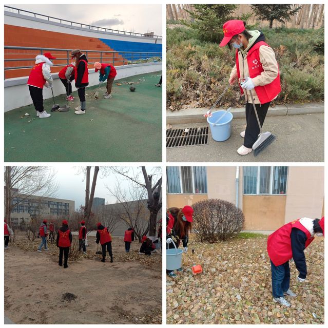 10月30日下午,在党史学习教育的感召下,团总支的学生干部们与40余名学生志愿者,分成4个小组分别对体育场、校园门口等地进行卫生清扫,各组志愿者们不畏天气的寒冷,按既定路线同时出发,以最饱满的热情对校园的各个角落进行全面清理。垃圾清理工作持续了一个多小时,校园的卫生死角焕然一新,一名志愿者激动的说:“真的很冷很累,但是想到能为创建文明干净的校园出一份力,再冷再累也值得!”最后各组志愿者于大医广场汇合,合影留念。