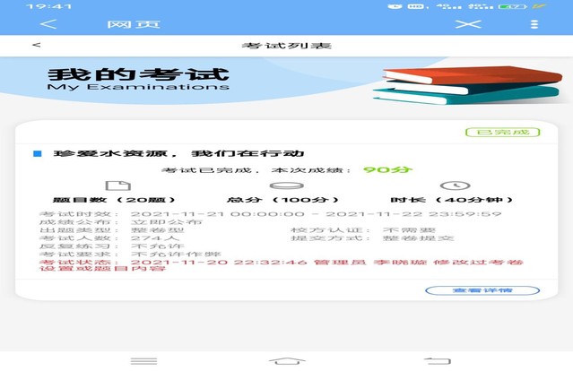 活动一:易班答题。学院利用易班平台,面向全体学生进行了节约水资源的宣传,并通过学生参与答题的形式,进一步深化同学们对水资源知识的了解,提升了同学们节约用水和保护水资源的意识。