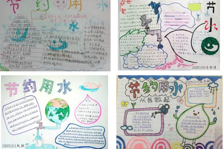 活动三:手抄报比赛。在这个活动中,同学们通过查阅资料和动手实践等多种途径对水资源问题进行深入探究后,用一幅幅多姿多彩的手抄报表达自己对节约用水、保护环境的深刻认识。在学生们的画笔下,他们对水资源问题的深刻认识和独特思考纷纷呈现,彰显着学生们珍爱水资源的决心。
