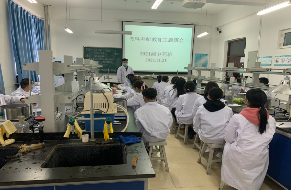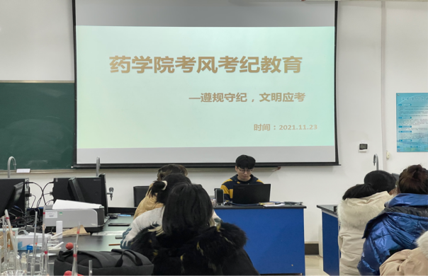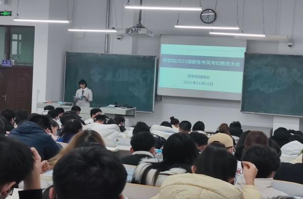 为进一步加强考风考纪教育,构建诚信校园,倡导同学们树立诚信为本、公平竞争的思想观念,做到诚信考试、拒绝作弊,药学院于11月15日至28日,以班级为单位通过线上或线下的方式召开了考风考纪教育主题班会,班会由各班班主任或辅导员主持。