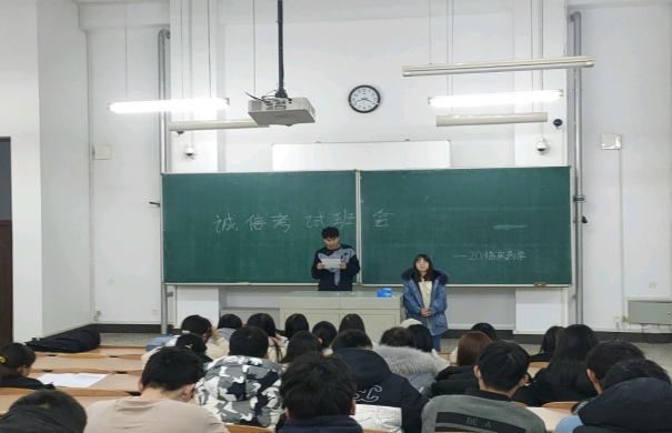 班会上,辅导员、班主任教育同学们认真备考,严格遵守考试纪律是学生的基本行为规范,是大学生应具备的道德素质。要求同学们在考试过程中严格遵守考试规章制度,实事求是,杜绝一切考试作弊形式,要弘扬诚信正义,树立与不良风气作斗争的信心和勇气,勇于检举揭发考试作弊行为。同时辅导员、班主任与同学们沟通交流考试复习情况,指导同学们应该如何高效复习,引导学生通过自身承诺强化个人遵章守纪意识,培养学生诚实守信的良好品德。