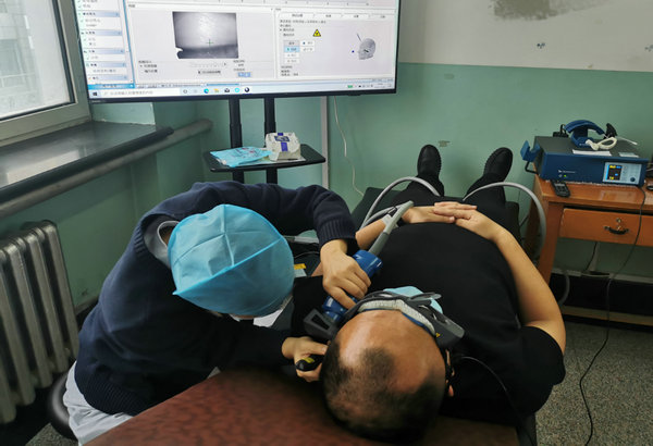 该系统有一套HINTS组合检查,该检查组合包括凝视性眼震、眼偏斜试验和甩头试验。该组合检查特异性可达100%,优于急性脑梗死24小时头颅磁共振检查。(供稿、摄像:神经内科三病区 吕禄廷 编辑:宣传科 张宁)