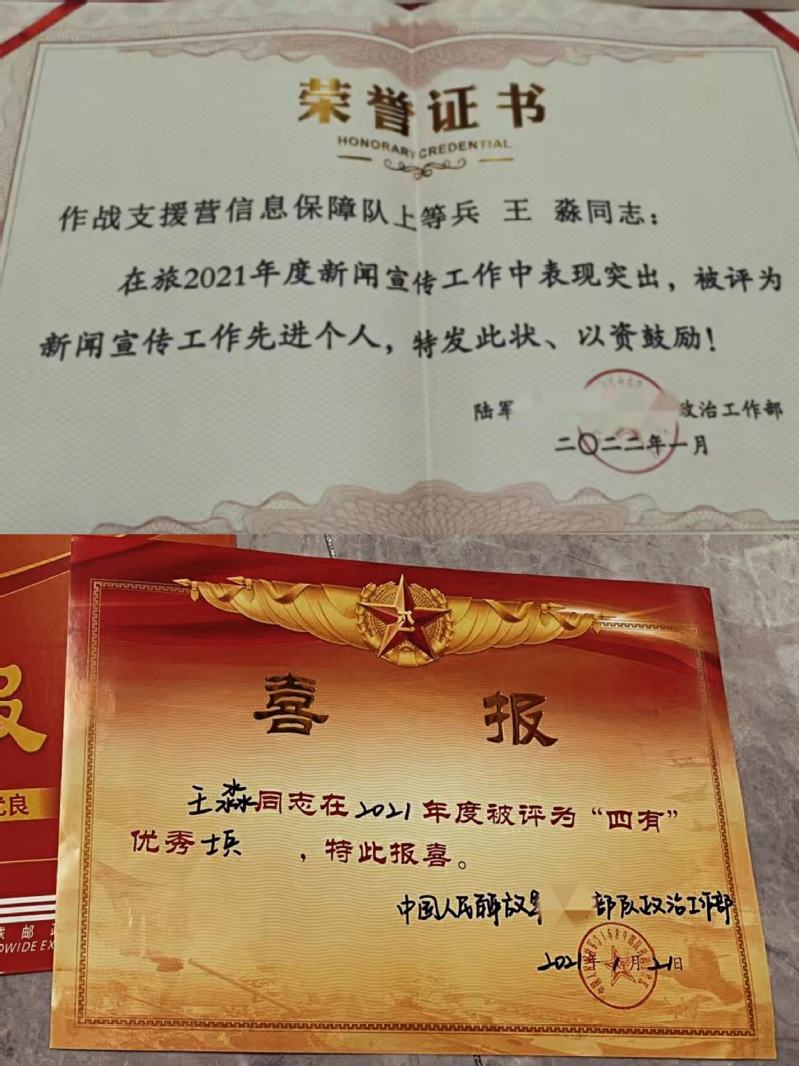 在军营中的每次的晚会表演,女兵总是大家最不愿意错过的镜头,同时也给多才多艺的王淼更大的发挥空间,每次的部队各级联欢会必定有她参与撰稿主持、每次全旅晚会上女兵的集体舞蹈必定是她精心编排并参与表演,每次的拉练演习后的新闻稿件必定是她摄影、撰写、播报。分别获得旅级“新闻报道先进个人”“四有优秀军人”等荣誉称号。
