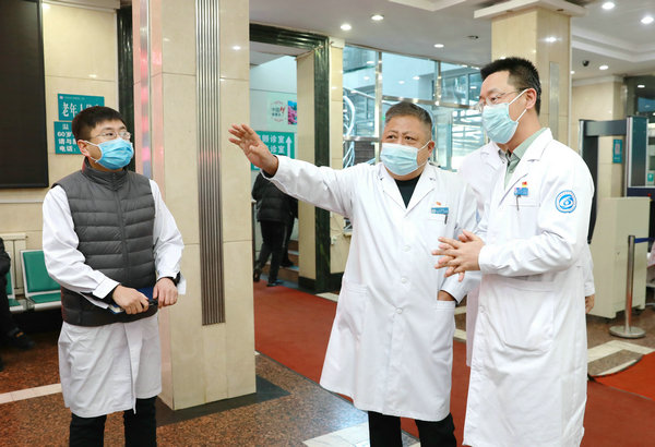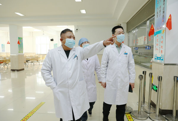 3月16日上午,齐医附属二院党委书记丁国旭、院长武立刚、副院长鲍红光及相关科室负责人深入一线检查督导医院疫情防控工作。
