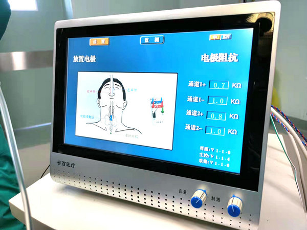 与以往不同的是,2台手术中麻醉机旁摆放了一台新的设备,数根导线连接了病人的皮肤和麻醉等设备,这台设备的显示大屏上显示着电生理的波形,并在手术关键时刻不断发出嘟嘟提示音,这台设备就是国内最先进的甲状腺术中神经监护仪,与其它监护仪的区别它不是监护心电图脑电图,它是专门用来监护甲状腺毗邻的神经的电活动的设备。