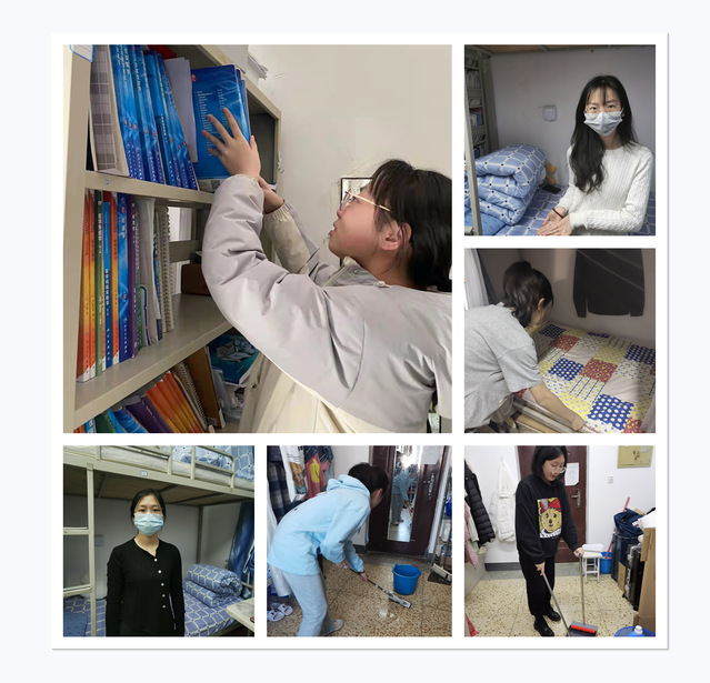 学生公寓内,同学们整理寝室床铺,打扫寝室卫生,维持宿舍干净整洁,并将照片与视频与家长分享,获得了家长的肯定与鼓励,让家长们了解学校静态管理期,学生在线上课期间生活状态。也让同学们感受到劳动的意义与乐趣,让家长们放心,拉进了家长、学生、学校的距离。